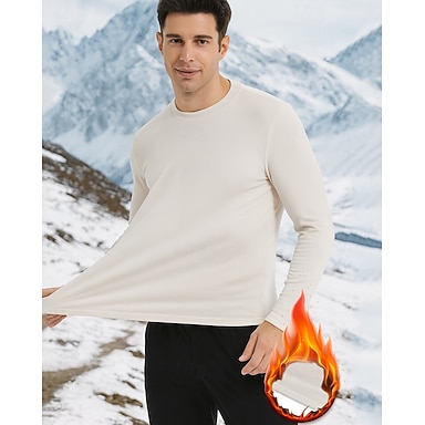 Homme Couche de Base Chemises thermiques manche longue Col ras du cou Top Extérieur Chaleur Thermique Hiver Automne Polyester Noir Kaki Beige Salle de sport Entraînement Voyage