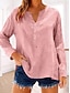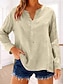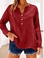 Femmes Chemise Chemisier Faux coton lin Boutons Uni Occasionnel manche longue Col en V Hauts Réguliers Quotidien Fête Sortir Noir Rose Claire Rouge Marron Abricot Été Printemps