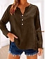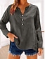 Femmes Chemisier Chemise en coton Faux coton lin Boutons Couleur Unie Élégant Occasionnel manche longue Col en V Hauts Réguliers Quotidien Bleu Marron Vert Gris Printemps Automne