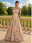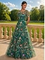 Ligne A Longueur au sol Robe de Soirée Tenue de soirée Élégant ancien manche longue Col haut Mariage Formel Poche Dentelle avec Imprimé floral