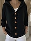 Femmes Veste Chaud Confortable Avec Poches Boutons Mode Uni Sortir Décontracté Quotidien Week-end Simple Boutonnage Régulier Col Rond Coupe régulière manche longue Vêtements d'extérieur Noir Blanche