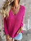 Femmes Pull Quotidien Élégant Occasionnel Couleur Unie Côtelé Col en V Tricoté manche longue Hauts Réguliers Tricoter Quotidien Fête Sortir Rose Claire Bleu Automne Hiver