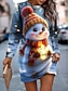 Femmes Mini Robe Robe fourreau Occasionnel Noël Fête Sortir Coupe régulière Graphique Bonhomme de neige Motif de flocon de neige manche longue Col ras du cou Bleu Violet Vert Printemps Automne Hiver