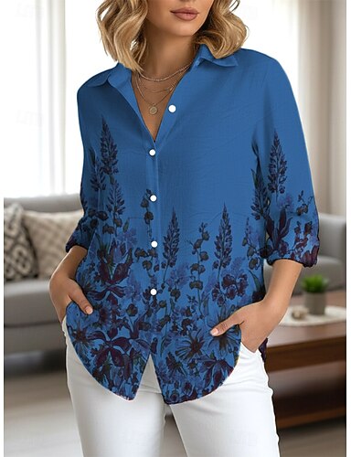 Femmes Chemise Boutons Imprimé Fleuri Élégant Quotidien Moderne manche longue Col de chemise Hauts Réguliers Quotidien Fête Bleu Rouge Printemps Automne