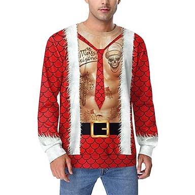 Impression 3D 3D Noël Manche Évêque Pull Sweat-shirt de Noël amusant père Noël Drôle pour Couple Homme Femmes Adulte Impression 3D pour Noël Carnaval Soirée Festival