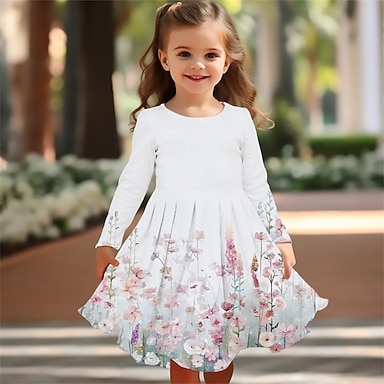 Pâques FILLE 3D Graphic Fleur Robe manche longue Eté Printemps Vacances du quotidien Princesse Magnifique Doux Enfants 4-12 ans Robe casual Robe Trapèze Mi-long Standard
