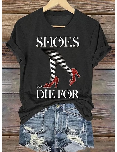 T-shirt pour femmes Imprimé graphique de sorcière Vintage Élégant Classique Manches courtes Col ras du cou Col rond Ajustement régulier Hauts Quotidien Week-end Imprimé Noir Blanc Bleu Orange Vert