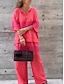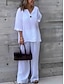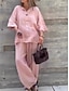 Ensemble pantalon et haut boléro en lin et imitation coton pour femme, manches 3/4, col rond, couleur unie, style streetwear tendance, idéal pour un quotidien décontracté ou une sortie en extérieur.