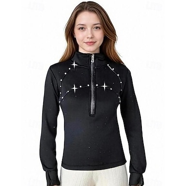Veste polaire de patinage artistique Femmes Patinage Veste Top Noir Patchwork Spandex Élastique Entraînement Compétition Tenue de Patinage Chaleur Thermique Classique manche longue Patinage sur glace