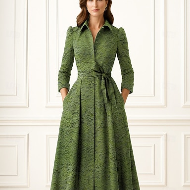 Femmes Robe smoking Ligne A Formel robe demoiselle d honneur Tissu Extensible Élégant Simple Minimaliste Manche 3/4 Mi-long Col en V Revers