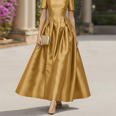 Ligne A Longueur au sol Robe d'invité de mariage Robe de Cérémonie Robe Évasée Robe de Mère de Mariée Manche 3/4 Col de chemise Élégant Simple Minimaliste Formel robe demoiselle d honneur Satin avec