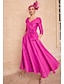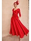 Ligne A Longueur thé Robes de Cocktail Élégant ancien manche longue Col en V Mariage Formel Poche Satin avec Fleur brodée Plis Poche