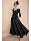 Ligne A Longueur au sol Robe de Soirée Tenue de soirée Élégant Robe Noire Soyeux Manche Courte Épaules Dénudées Mariage Formel Capes Satin avec Poche