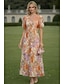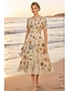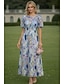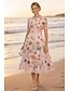 Ligne A Asymétrique Longueur cheville Robes de Cocktail Robe de Soirée Tenue de soirée Élégant ancien Manche Courte Col en V Mariage Formel Nylon avec Imprimé floral Poche
