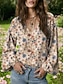 Chemise boho en lin comme faux coton pour femmes graphique floral élégante Bohême vintage à manches longues col en V hauts réguliers quotidiens vacances imprimé bleu blanc violet orange été printemps