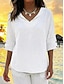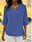 Femmes Chemise Chemisier Faux coton lin Boutons Couleur Unie Basique Occasionnel Manche 3/4 À capuche Hauts Réguliers Quotidien Bleu Blanche Été