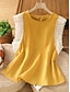 Femmes Chemisier Chemise en coton T-shirt sans manches Dentelle Uni Élégant Classique Moderne Sans manches Col ras du cou Hauts Réguliers Quotidien Fête Sortir Noir Jaune Été Printemps
