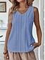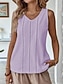 Femmes T-shirt Faux coton lin Œillet Uni Mode Élégant Classique Sans manches Col en V Hauts Réguliers Quotidien Sortir Week-end Bleu Noir Blanche Bleu Ciel Violet Été Printemps
