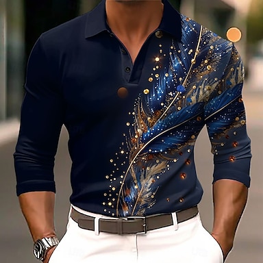 Homme A Ombre Géométrique Polo Chemise de golf manche longue Polos Chemises à Col Occasionnel Vêtement décontracté de travaile Tenue de soirée Tenue Quotidienne Impression 3D Boutons Printemps