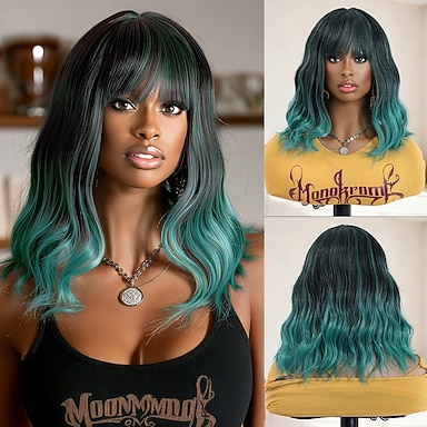 Perruque Synthétique Ondulé Boucle Lâche Raie au milieu Frange Droite Perruque 14 pouces Noir / Vert Cheveux synthétiques 14 pouce Femmes Doux Vert