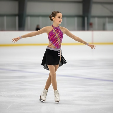 Robe de Patinage Artistique Femme Fille Patinage Robes Noir Blanche Pourpre foncé Dos ouvert Maille Spandex velvet Haute élasticité Compétition Tenue de Patinage Chaud A Bijoux Strass manche longue