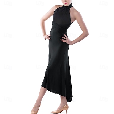 Danse de Salon Robe Plis Couleur unie Épissage Femmes Soirée Entraînement Performance Sans manches Haut Spandex Polyester
