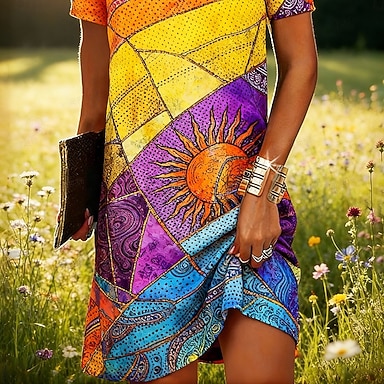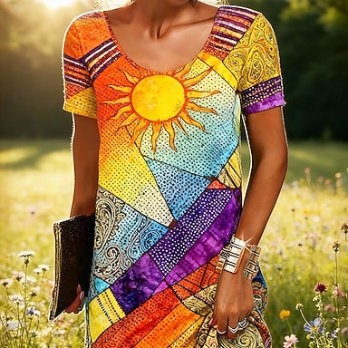 Femmes Mini Robe Robe bohème Robe Décontractée Robe T-Shirt ancien Quotidien Extérieur Vacances Coupe régulière Graphique Multicolore Manche Courte Col ras du cou Rouge Été Printemps