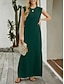 Robe de invitée de mariage en A robe élégante invitée de mariage fiançailles longueur totale sans manches col rond crêpe extensible avec plis et fente