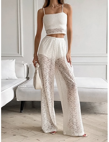 Femmes Ensembles deux pièces Camisoles Ensembles de Pantalons Sans manches Bretelle Uni Dentelle Mode Streetwear Occasionnel Quotidien Extérieur Blanche Été Coupe régulière
