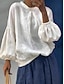 Femmes Chemisier Chemise en faux lin Boutons Couleur Unie Élégant Basique Occasionnel Manche Courte Manches Bouffantes Col ras du cou Hauts Réguliers Quotidien Bleu Noir Blanche Jaune Rouge Ét