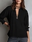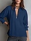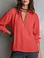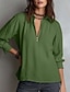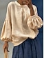 Femmes Chemises en coton et lin Chemisier Boutons Uni Élégant ancien Manche 3/4 Col haut Hauts Longs Quotidien Fête Sortir Champagne Rouge Vert Été Printemps