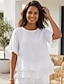 Femmes Chemisier Faux coton lin A Volants Uni Quotidien Élégant Basique Manche Courte Col ras du cou Hauts Réguliers Quotidien Travail Fête Noir Blanche Gris Été