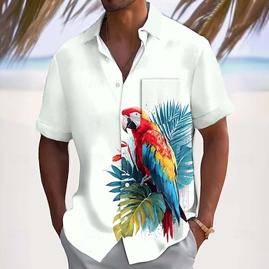 Homme Perroquet Plantes Tropicales Fleurs Chemise hawaïenne Chemise Boutonnée Chemise Aloha Manche Courte Hawaïen Occasionnel Vacances Été Printemps Col Rabattu Impression 3D chemises à col Une poche