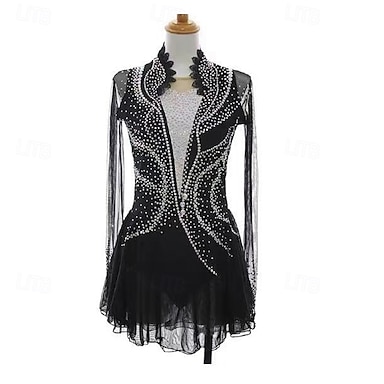 Robe de Patinage Artistique Femme Fille Patinage Robes Noir Trou de pouce Maille Spandex Elastique Entraînement Professionnel Compétition Tenue de Patinage Chaud Classique Cristal / Stras manche