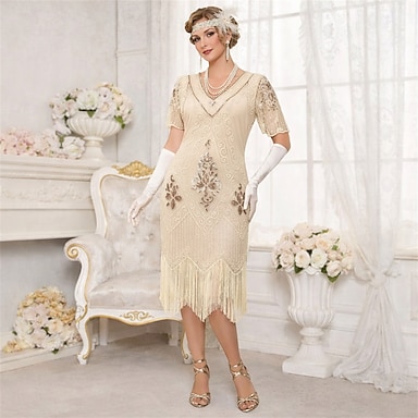 Fourreau Colonne Longueur thé Robes de Cocktail Robe de Soirée Robes de soirée Élégant Scintillant Style Célébrité Manche Courte Col ras du cou Fête de jardin Mariage Dentelle avec Broderie Appliques