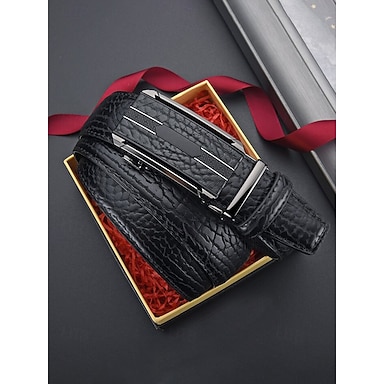 Ceinture habillée pour homme en similicuir, boucle automatique à finition texturée, style classique et élégant, coloris noir et café, idéale pour les mariages, les tenues professionnelles et les looks décontractés chics.