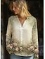Femmes Chemise Chemise Bohème Chemisier Imprimé Graphique ancien Élégant Classique manche longue Col en V Hauts Réguliers Quotidien Fête Sortir Noir Rose Claire Été Printemps