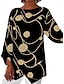 Chemises en lin comme du faux coton imprimé floral basique décontracté manches 3/4 col rond hauts réguliers quotidien bleu été