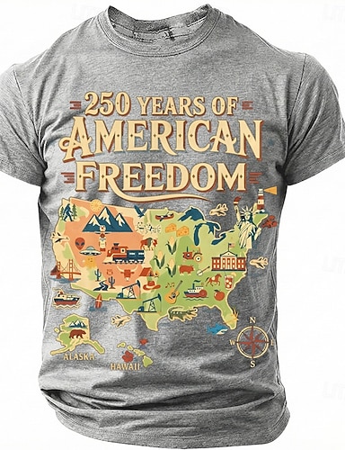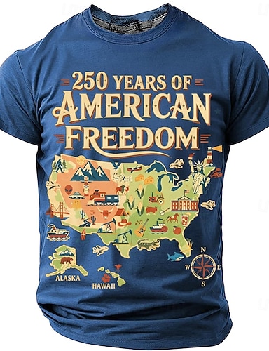 4 juillet 2026 250e jour commémoratif T-shirt à manches courtes col rond décontracté pour homme imprimé 3D Drapeau américain quotidien street