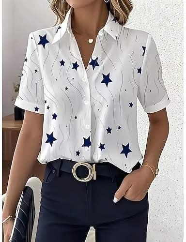 Femmes Chemise Graphique Etoile Rayé ancien Tropical Élégant Manche Courte Col de chemise Hauts Réguliers Quotidien Blanche Été Printemps