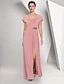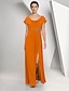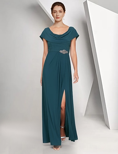 Ligne A Longueur au sol Robe d'invité de mariage Robe en Chiffon Robe de Cérémonie Robe de Mère de Mariée Manches Courtes Col ras du cou Élégant Simple robe demoiselle d honneur Semi-Formel Chiffon
