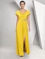 Ligne A Asymétrique Longueur au sol Robe de Soirée Tenue de soirée Élégant ancien Manche Courte Col de chemise Mariage Formel Poche Nylon avec Imprimé floral