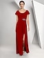 Deux Pièces Sirène Trompette Longueur thé Robe d'invité de mariage Robe de Mère de Mariée Demi Manches Bijoux Élégant Formel robe demoiselle d honneur Satin avec Boutons