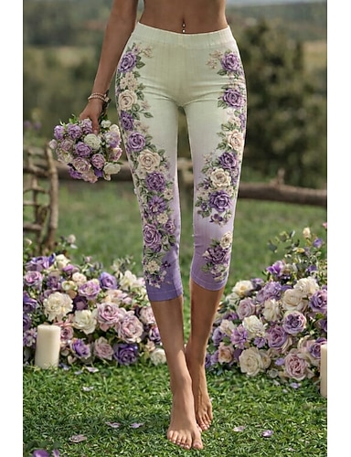 Leggings Capri pour femmes haute élasticité mode vintage vacances longueur mollet taille haute impression graphique florale thermique chaud respirant doux extensible formel extérieur vacances