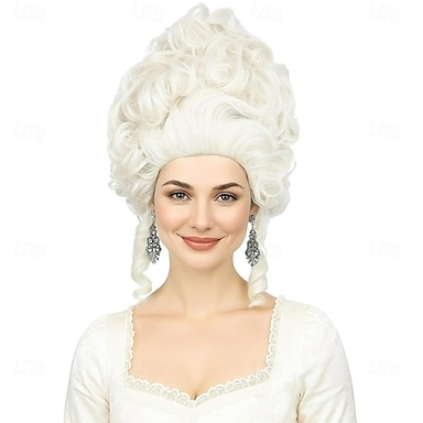 Perruque blonde platine pour femme, style colonial du XVIIIe siècle, perruque blonde en ruche, convient au cosplay de la reine de la Renaissance, fête d'Halloween