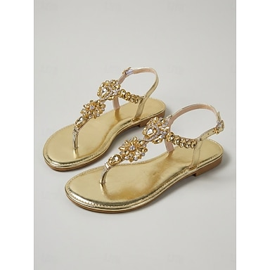 Sandales plates dorées à cristaux pour femmes, chaussures de soirée à bout ouvert et bride en T pour dîner à l'hôtel ou vacances &événements estivaux en soirée