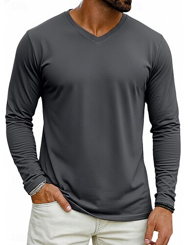 Homme T-shirt manche longue Col en V Printemps Hiver Printemps & Automne Couleur Unie Uni Tricots Quotidien Vêtements de sport Pur Occasionnel Quotidien Extérieur Noir Blanche Gris Foncé T-shirt haut