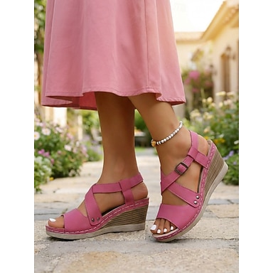 Sandales compensées rose poudré pour femmes – bride ajustable, chaussures à plateforme offrant un bon maintien, idéales pour la marche, les promenades dans le jardin, les voyages et le quotidien.
