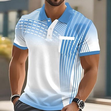 Homme Dégradé Géométrique Polo Polos de Sport Manche Courte Polos Chemises à Col Occasionnel Athleisure Boutons Été Bleu Bleu Clair Violet