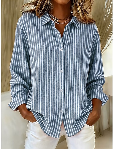 Femmes Chemise Décontractée Chemise Boutonnée Chemisier Imprimé Rayé Élégant Vacances ancien manche longue Col Rabattu Hauts Réguliers Extérieur Travail Bleu Vert Kaki Gris Printemps Automne Hiver